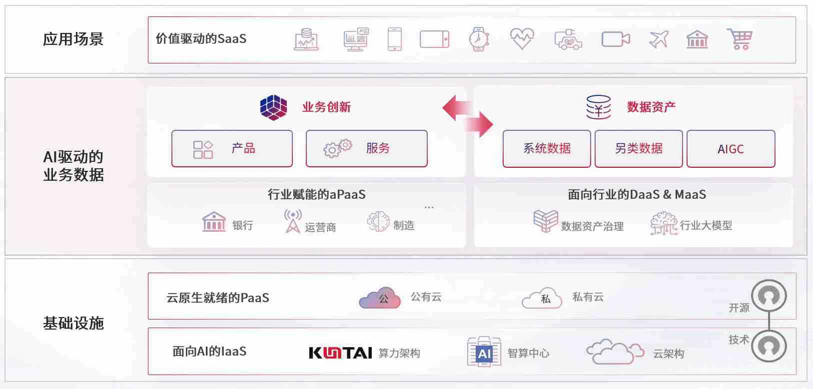 数字时代,,围绕企业数字化转型的关键要素,,,,欧陆注册数码开创性的提出数云融合战略和技术体系框架,,,着力在云原生、、、数字原生、、、、AI原生和信创产业上架构产品和服务能力,,,,为处在不同数字化转型阶段的快消零售、、、汽车、、、金融、、医疗、、政企、、、教育、、运营商等行业客户提供泛在的敏捷IT能力和融合的数据驱动能力,,,构建跨界融合创新的数字业务场景和新业务模式,,助力企业级客户建立面向未来的核心能力和竞争优势,,全面推动社会的数字化、、、智能化转型升级。。。。
